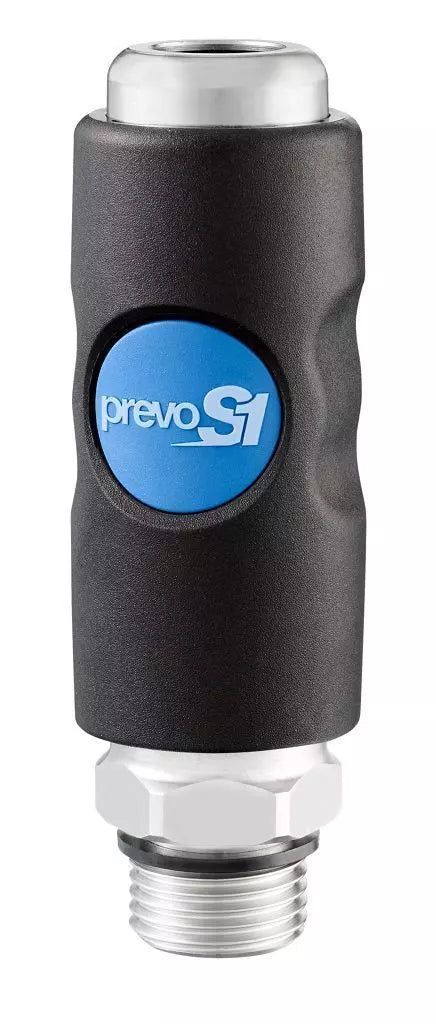 single push button patented safety coupler with 1/2" body industrial profilecompostive body for heavy duty applicationsnon scratch, anti static, non silicone partsNPT male thread = 3/4" MNPT