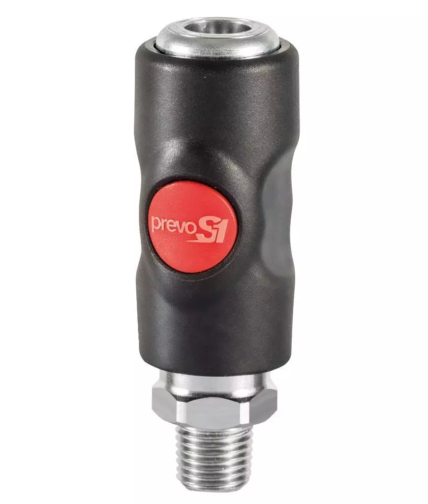 single push button patented safety couplercompostive body for heavy duty applicationsnon scratch, anti static, non silicone partsNPT male thread = 3/8" MNPT